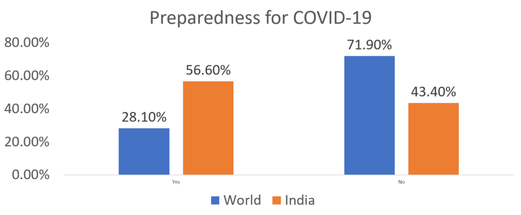 At the question of world preparedness for corona virus, only 28% of the respondents agreed that world is prepared for the virus. Whereas, in case of India 56.6%  of the respondents agreed that India is prepared for the virus at the national level (figure 3). This is how interestingly, the respondents showed their solidarity, faith and belief they have in their prime minister in this unprecedented COVID-19 situation